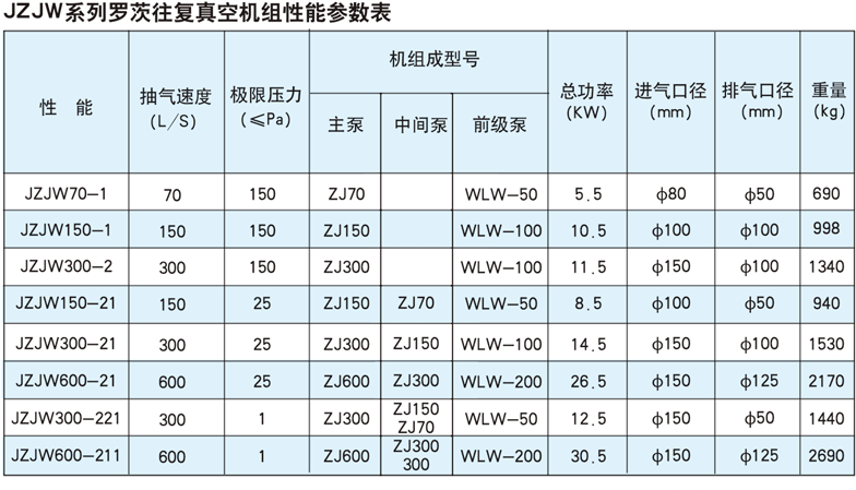 | JZJW系列罗茨往复真空机组 |